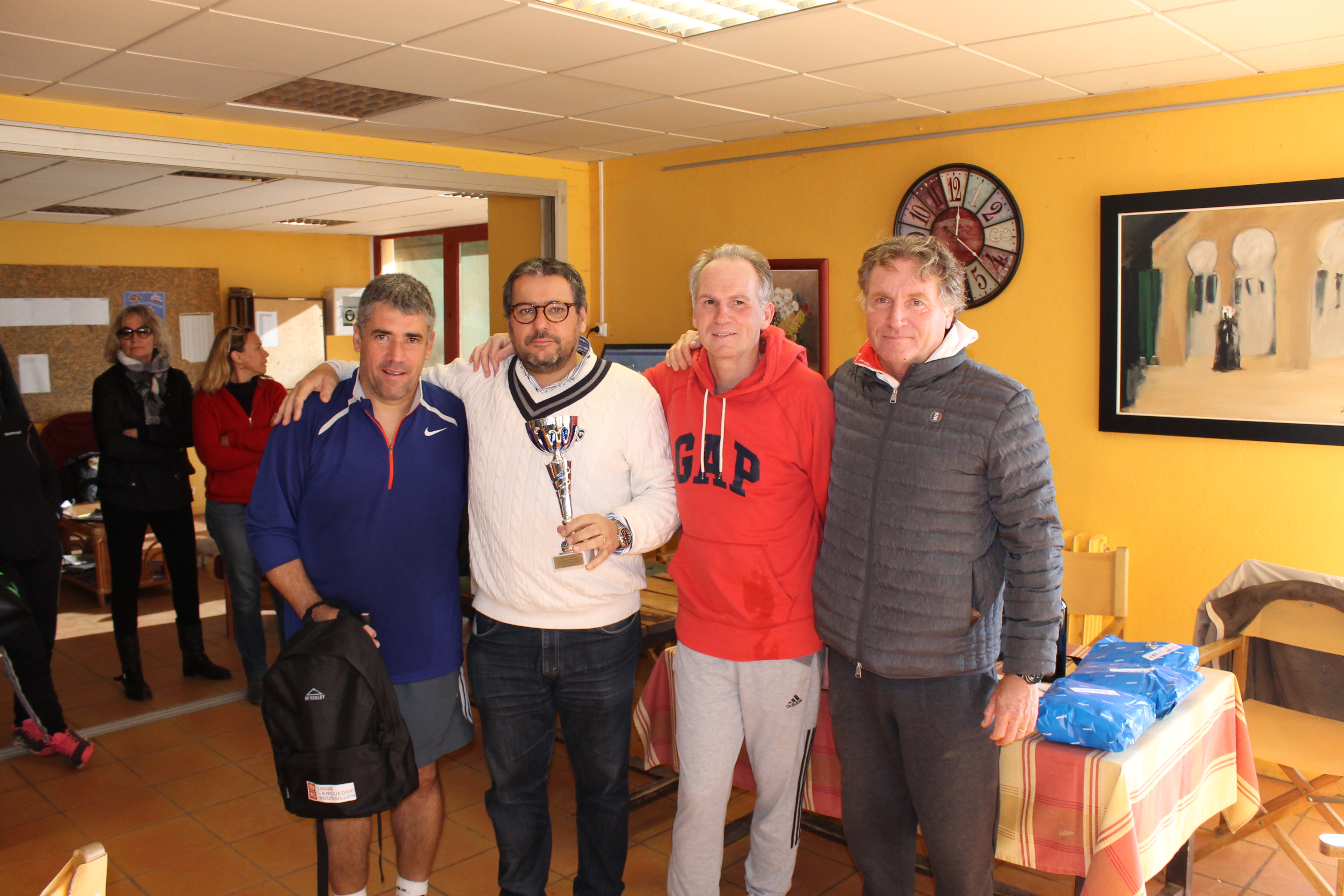 Toutes nos félicitations à nos 45 ans messieurs qui viennent de remporter le championnat régional +45 ans dans la plus haute des divisions ! Ils sont donc qualifiés pour le championnat de France qui se déroulera début 2017. Avec 5 victoires en 5 rencontres, Fred, Fabien, Olivier, Romain et leur capitaine Jean-François ont réalisé un sans faute. Pour rappel, il viennent d’arriver dans cette division grâce à leur montée acquise l’an dernier. Cela fait donc 2 saisons consécutives qu’ils sont intraitables. Un grand bravo à eux et nous espérons vous voir nombreux pour les soutenir en début d’année prochaine.